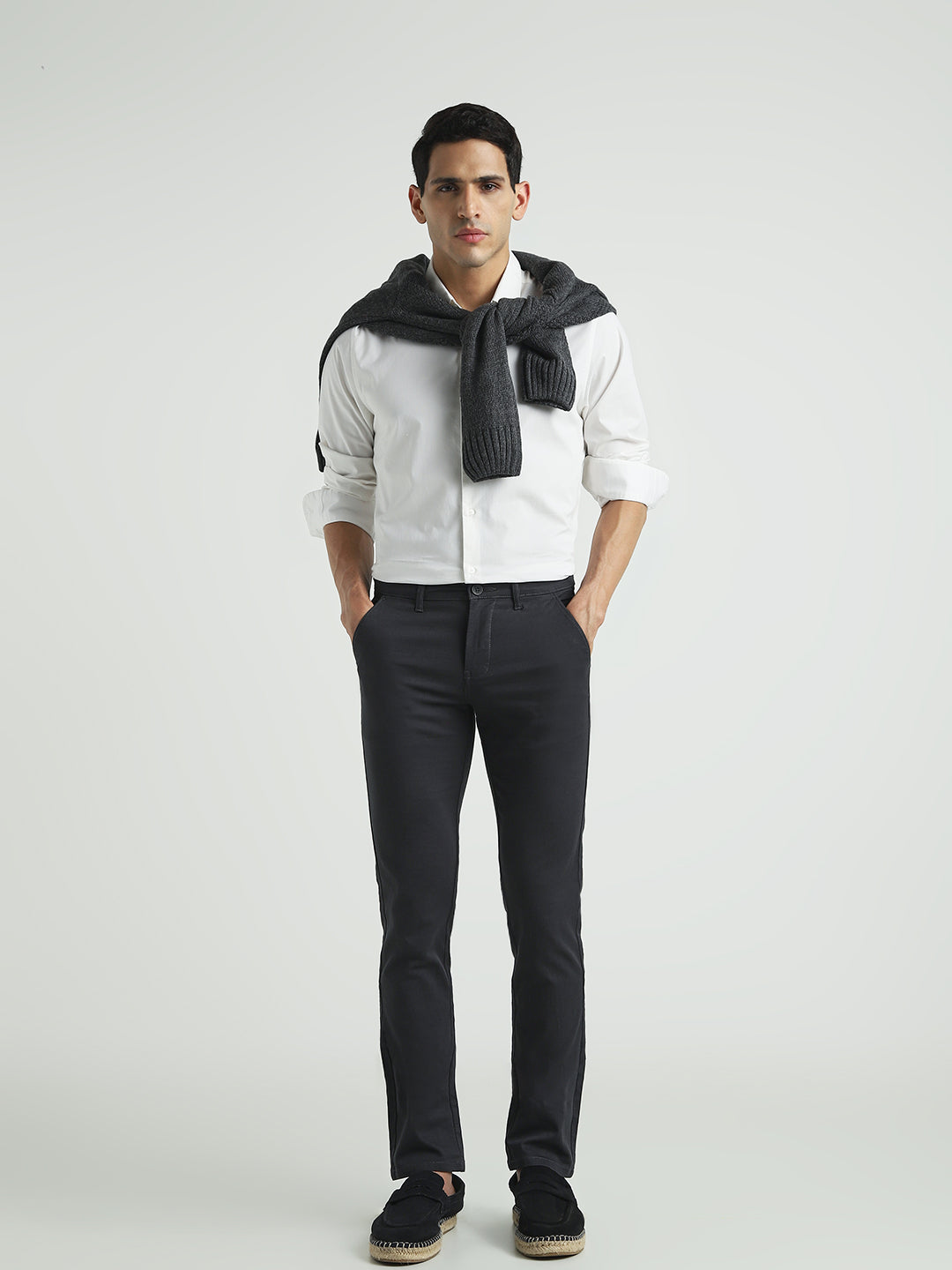 Refine your everyday wardrobe with these charcoal grey slim-fit trousers designed with a sharp. Ideal for both relaxed office wear and smart-casual outings, they pair effortlessly with shirts, polos, or lightweight knitwear.