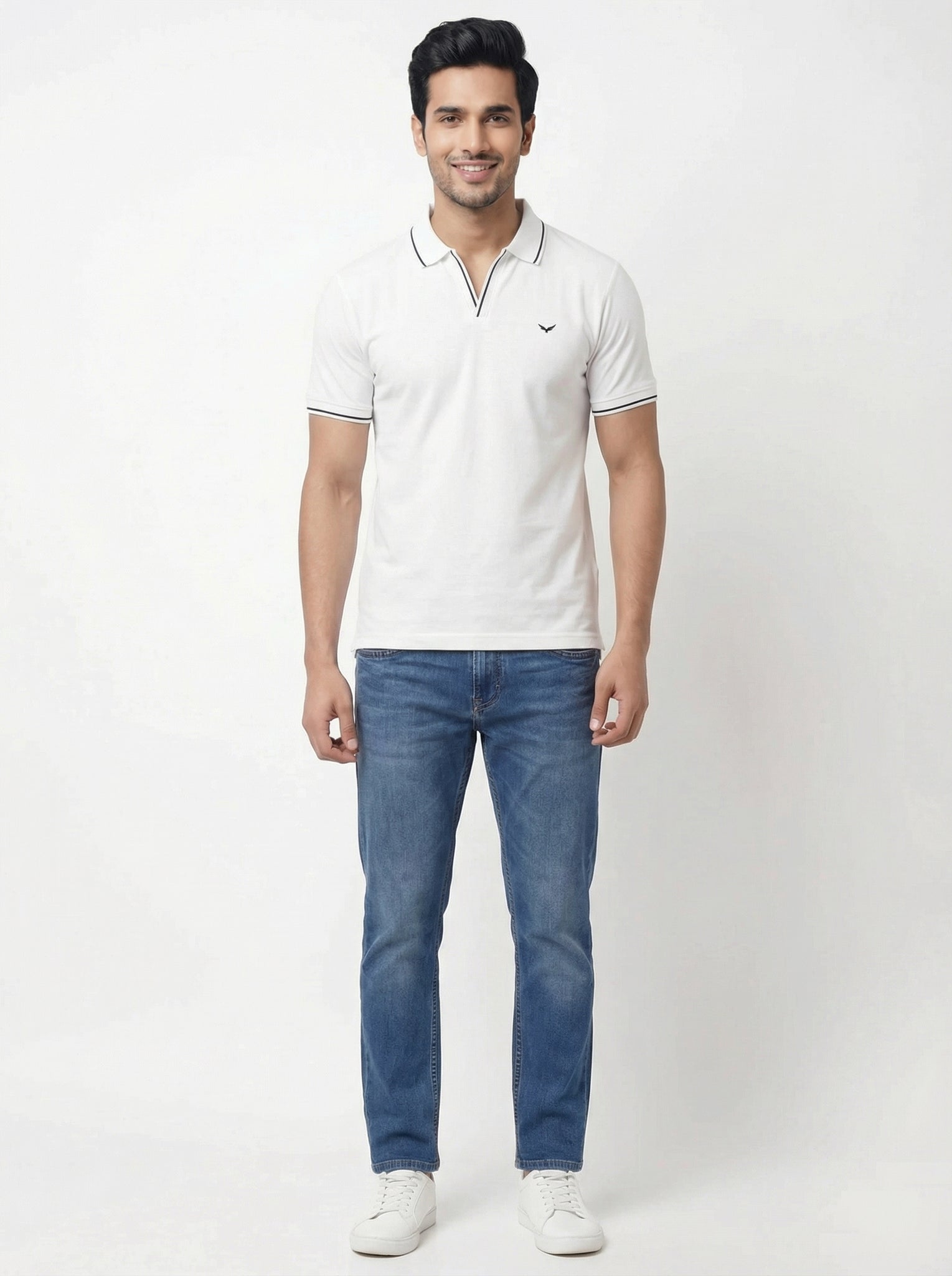 Off White Johnny collar T-shirt in a regular fit, crafted from soft cotton-blend fabric. Features short sleeves, contrast collar detailing, and a clean solid design for versatile everyday wear.