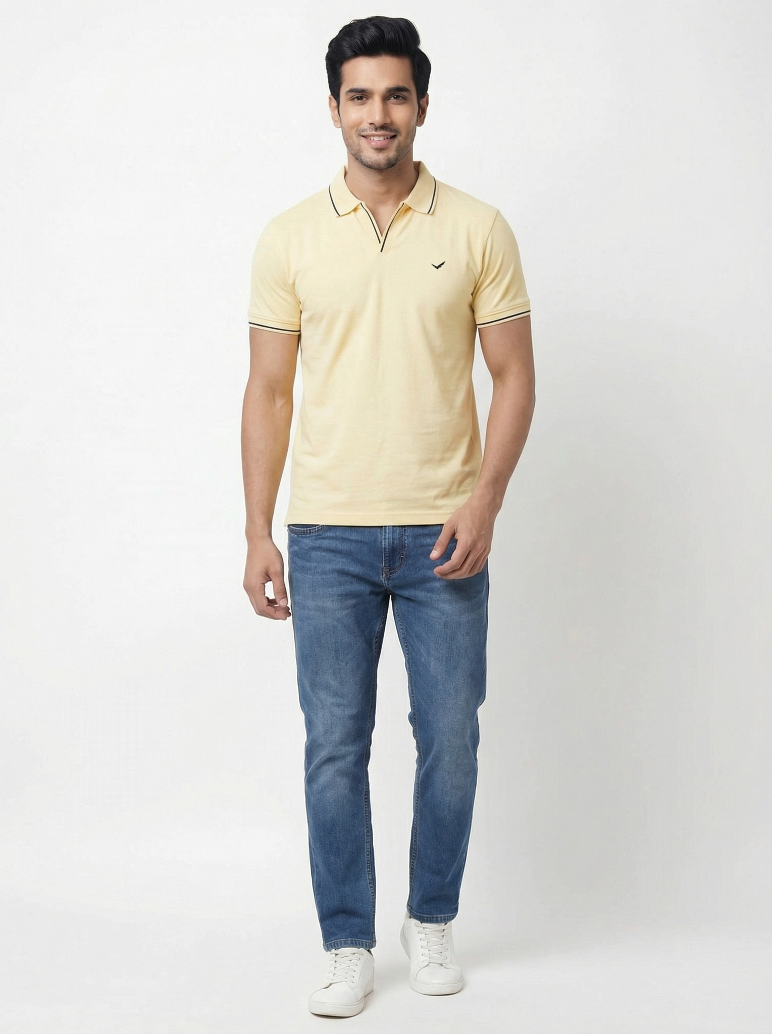 Lemon yellow Johnny collar T-shirt in a regular fit, made from soft cotton-blend fabric. Features short sleeves, contrast collar detailing, and a clean solid design for effortless casual wear.