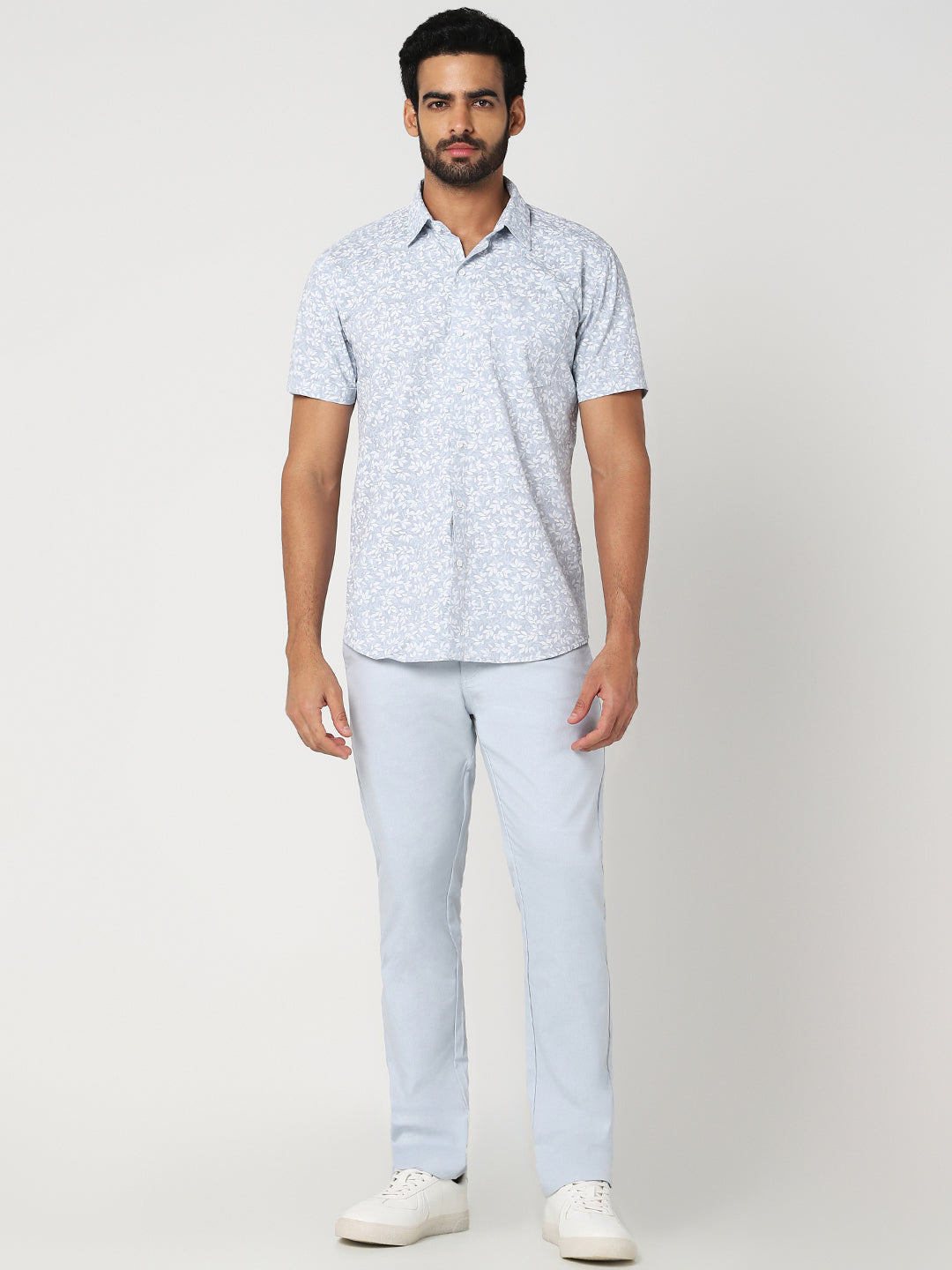 Home/Blue for You/Light Blue Textured Slim Fit Trouser