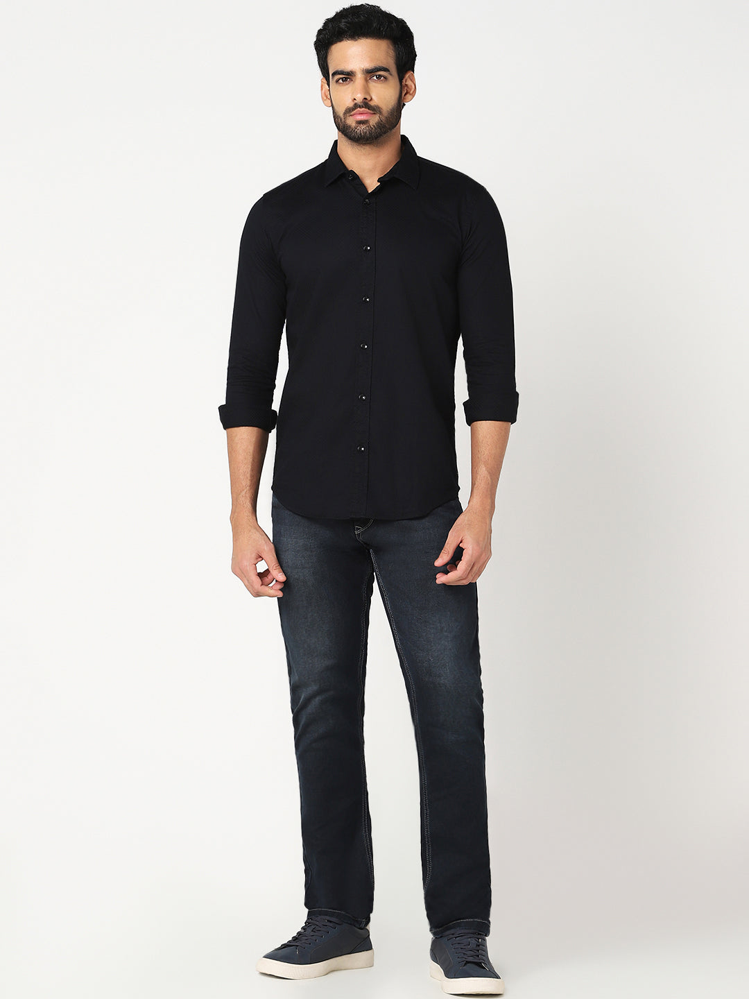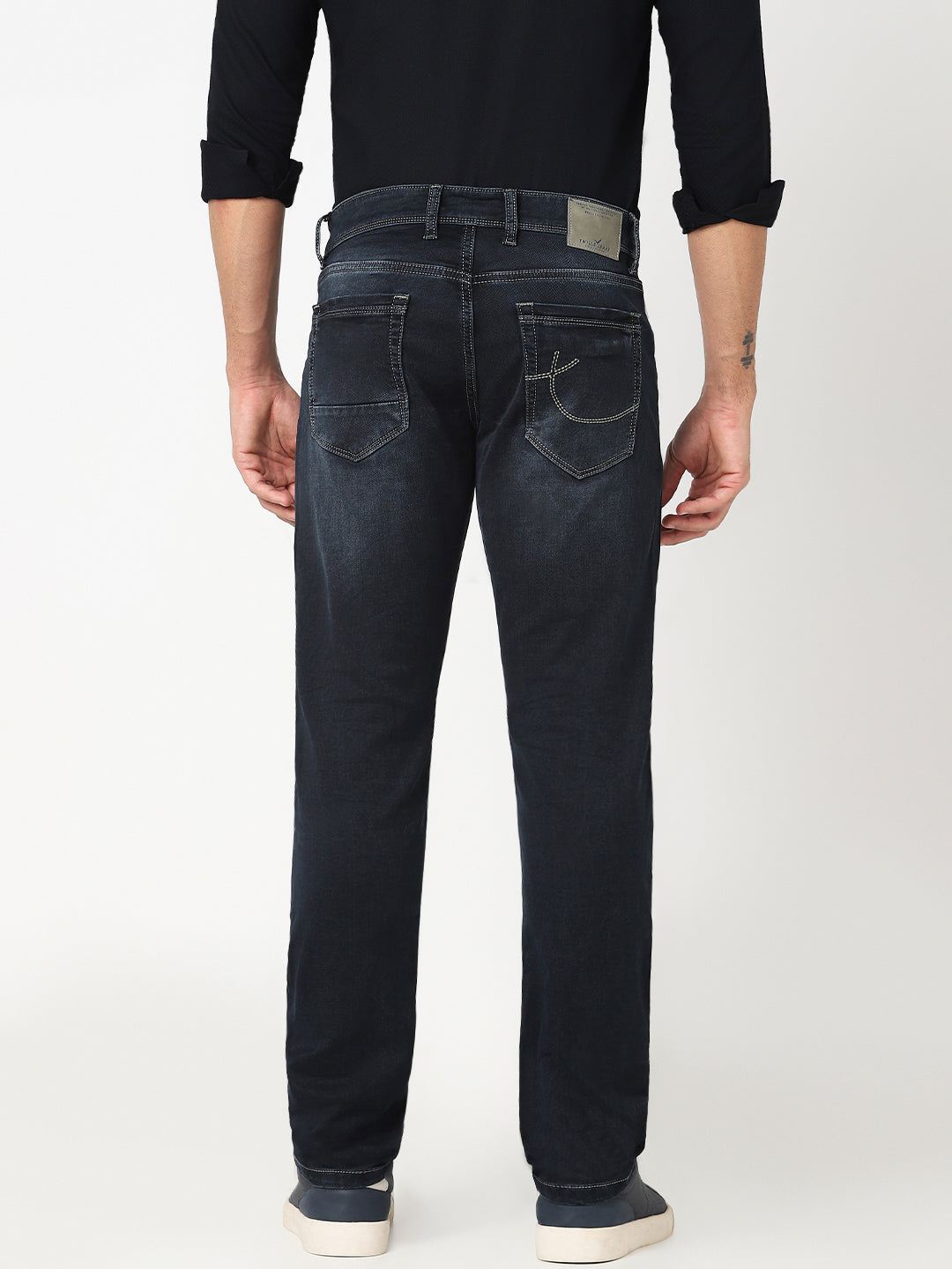 Dark blue denim with a subtle faded finish, offering a clean and versatile straight fit for everyday comfort and style.