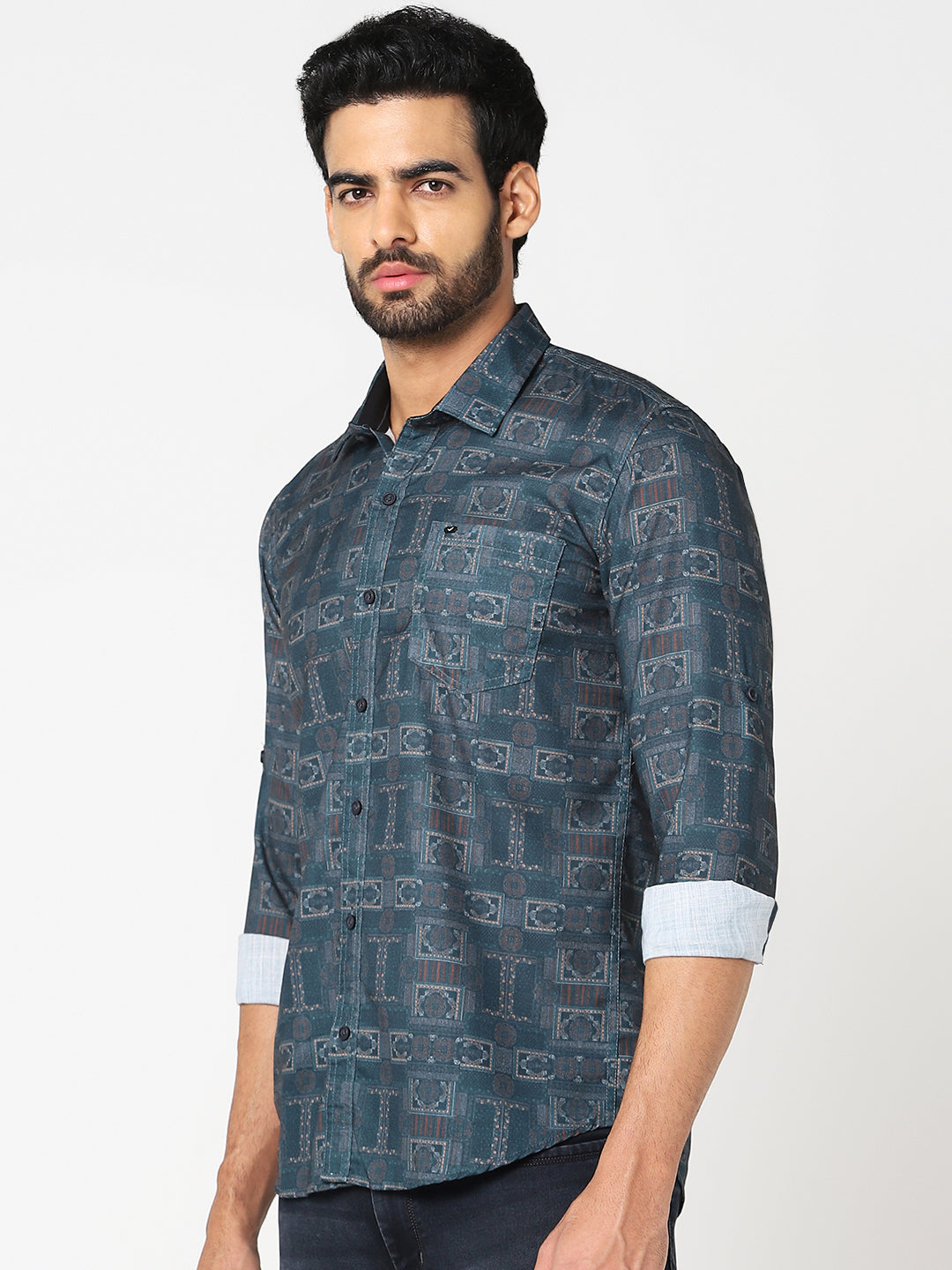 Home/చొక్కాలు/Teal Geometric Printed Casual Shirt